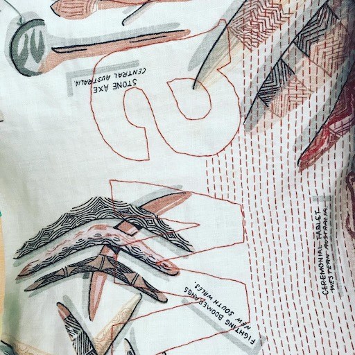 Cloaking, Quilting, Reckoning explores the possibility of a reparative practice through sustained, critical hand-stitching. Across three eventual works, We Stole Wages embraces hours of daily stitching practice for a period of a year in an attempt to provoke meaningful commitment to critically reflecting on non-indigenous Australian women’s complicity in Australia’s colonial history.