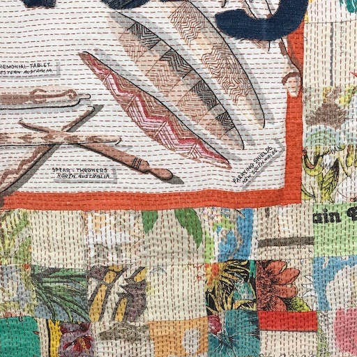The works in Cloaking, Quilting, Reckoning physically and figuratively deconstruct domestic homewares textiles produced during the twentieth century that were commonly purchased as souvenir items, that often appropriated Aboriginal art and cultural objects, and reinscribed Country through the eyes of the white tourist. This presentation discusses how the slow, extended labour in We Stole Wages is a transversal process for acknowledging white colonial responsibility, and that the quilt-like object directly addresses us and our complicity.