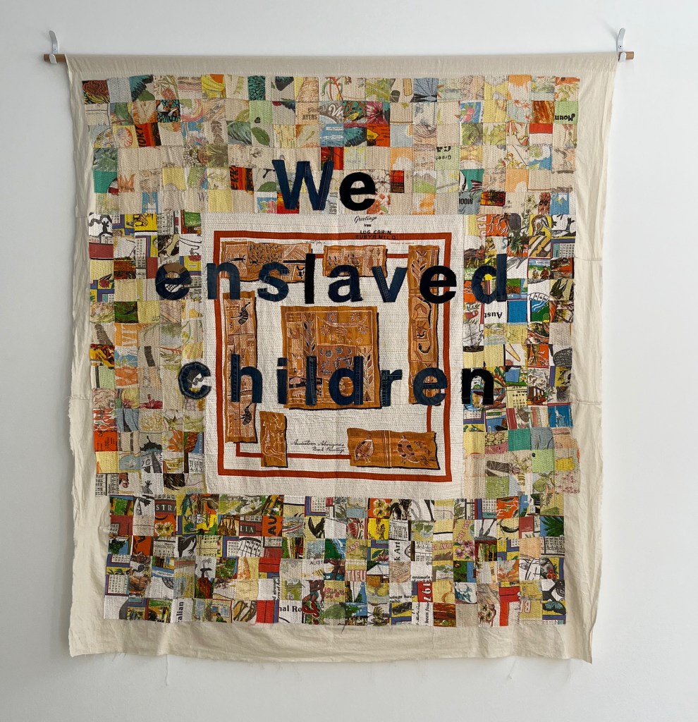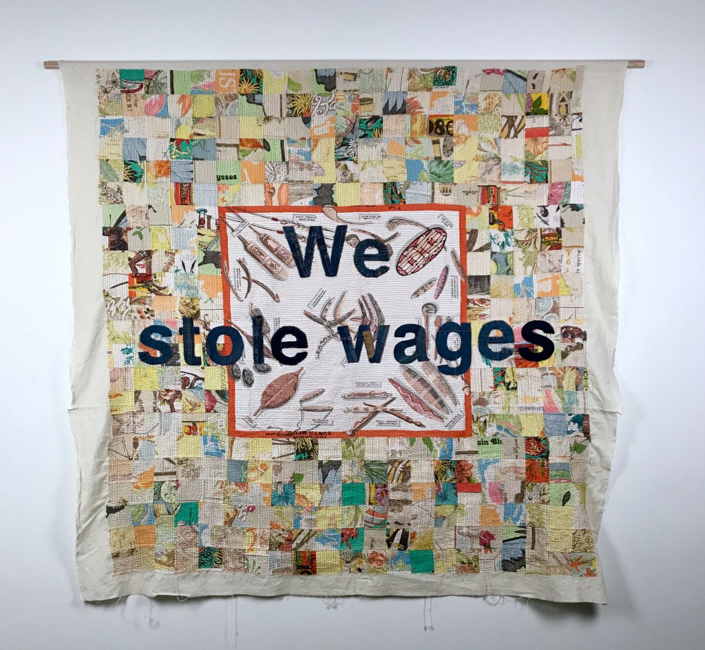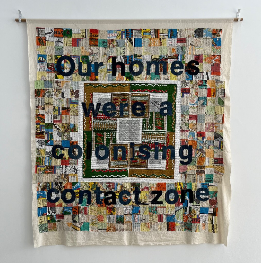 Cloaking, Quilting, Reckoning explores the possibility of a reparative practice through sustained, critical hand-stitching. The hours of daily stitching are a meaningful commitment to reflecting on non-indigenous Australian women’s complicity in Australia’s colonial history.