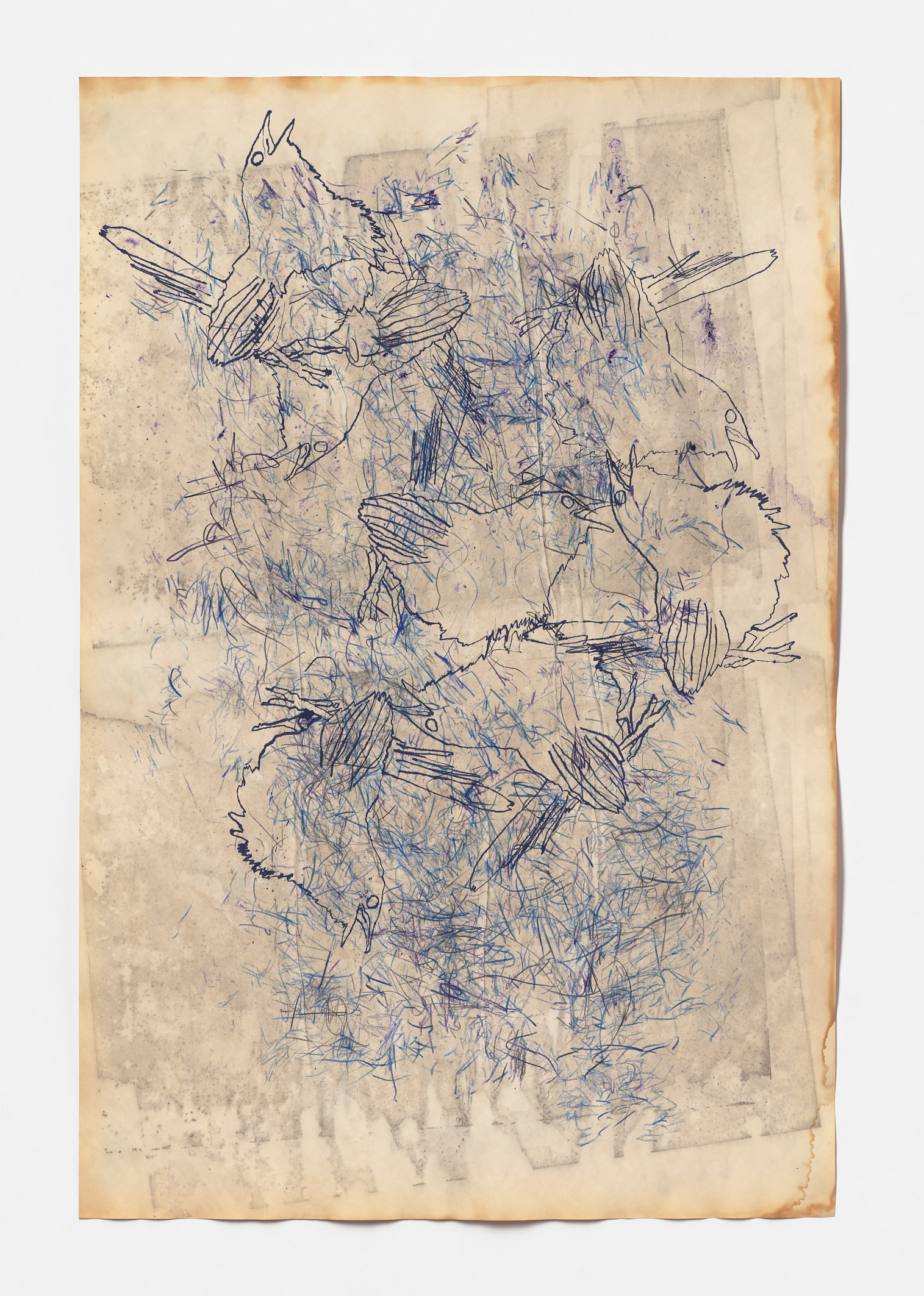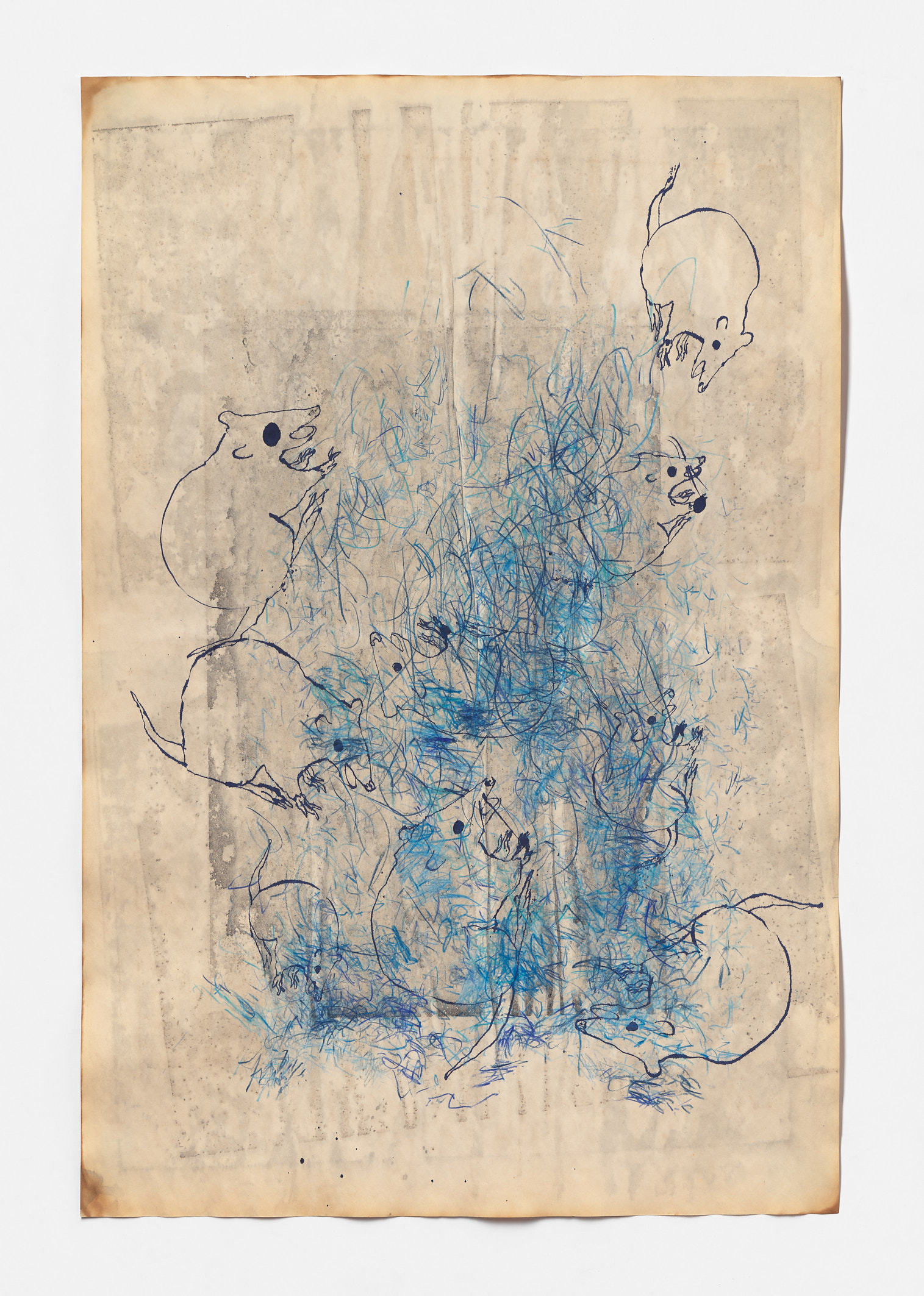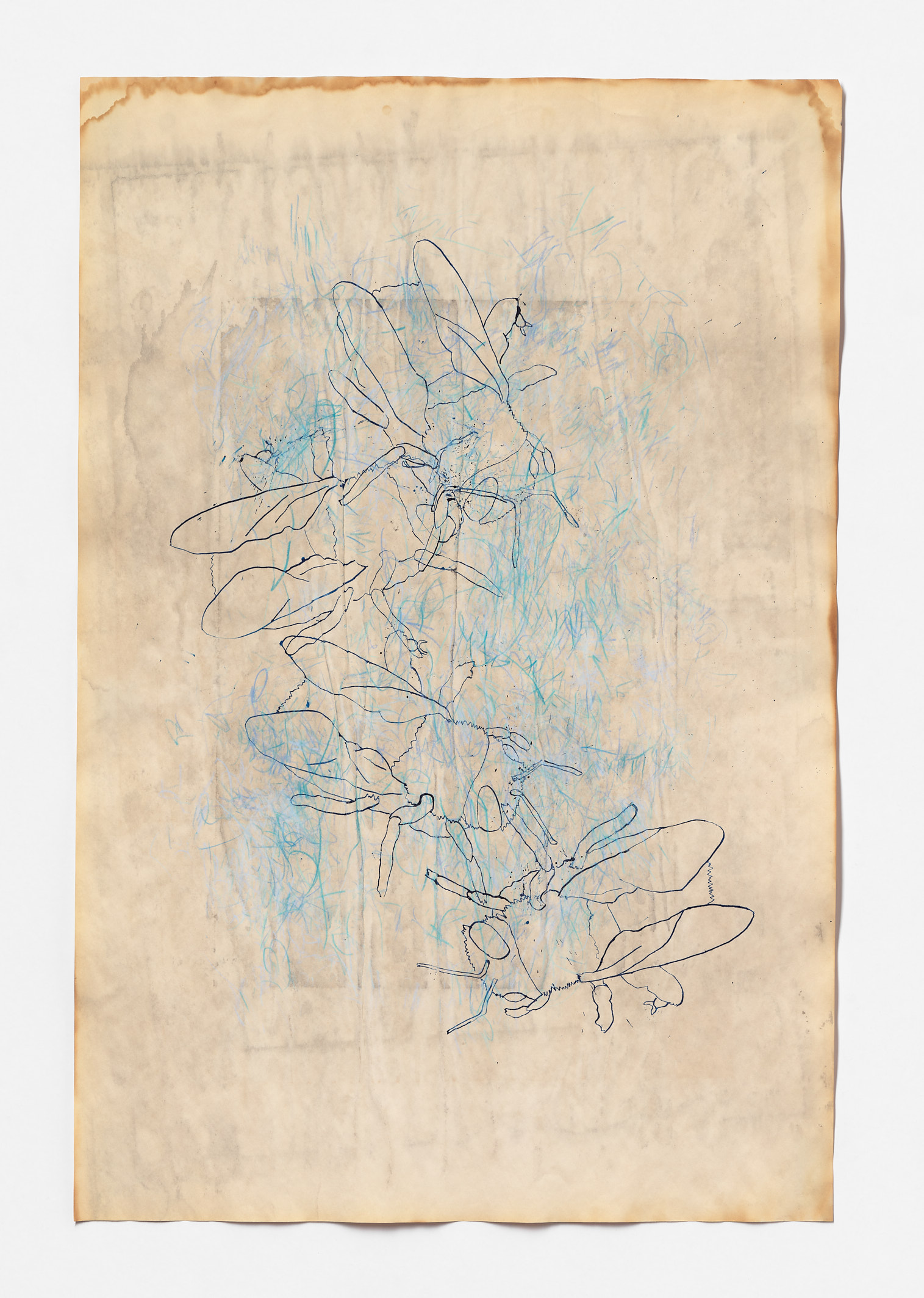 Mapping Extinctions explores beyond-the-human timescales by speculating on how we might map nature and wildlife during geologic upheaval. Soon the only way to experience wildlife will be through web videos. The work takes as its starting point the devastating effects of the 2019-2020 Australian bushfires which burned 11 million hectares and killed 5 billion animals. Dis-located drawings of animals reference the dispassionate specimen drawings made by botanists sailing on early colonial sailing ships, and their blue colour is a deliberate pun on the idea of recording something in perpetuity – as a form of blueprint should animal cloning become a possibility. The lost orientation of the animals in Mapping Extinctions comments on the long-term impacts of colonisation on Indigenous lands, enacted through the catastrophic effects of bushfires that occur more frequently due to improper land knowledge and management.