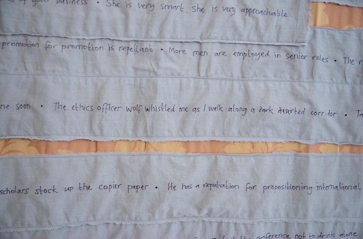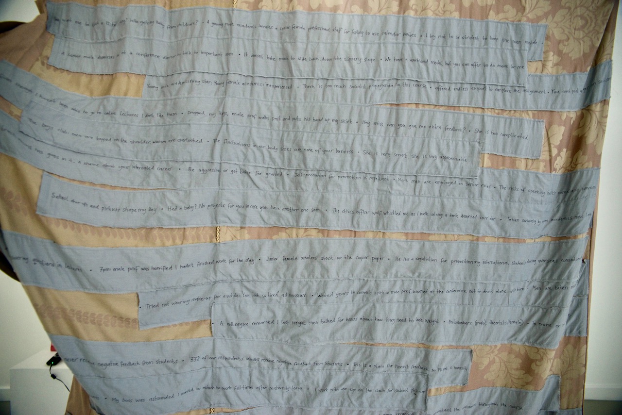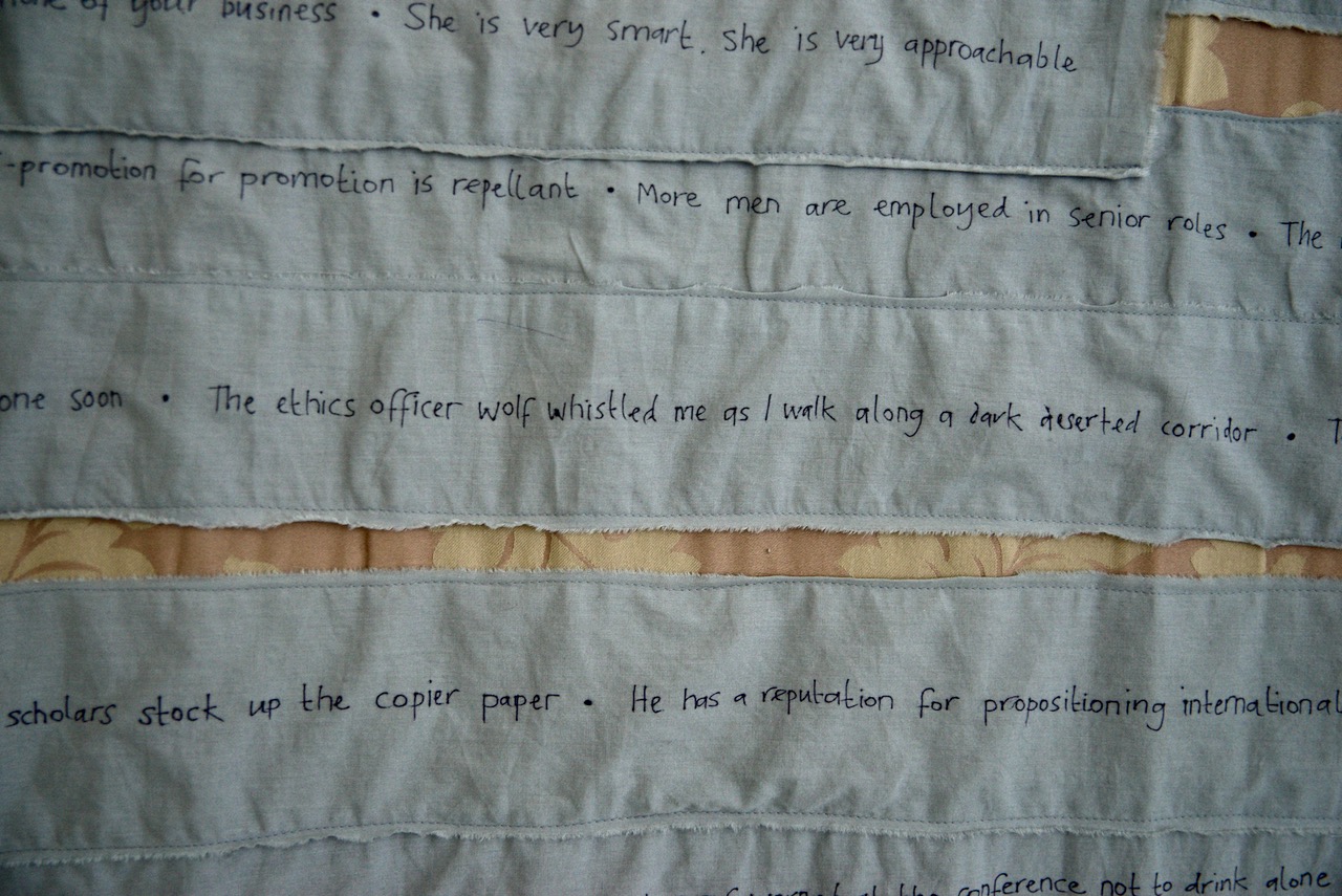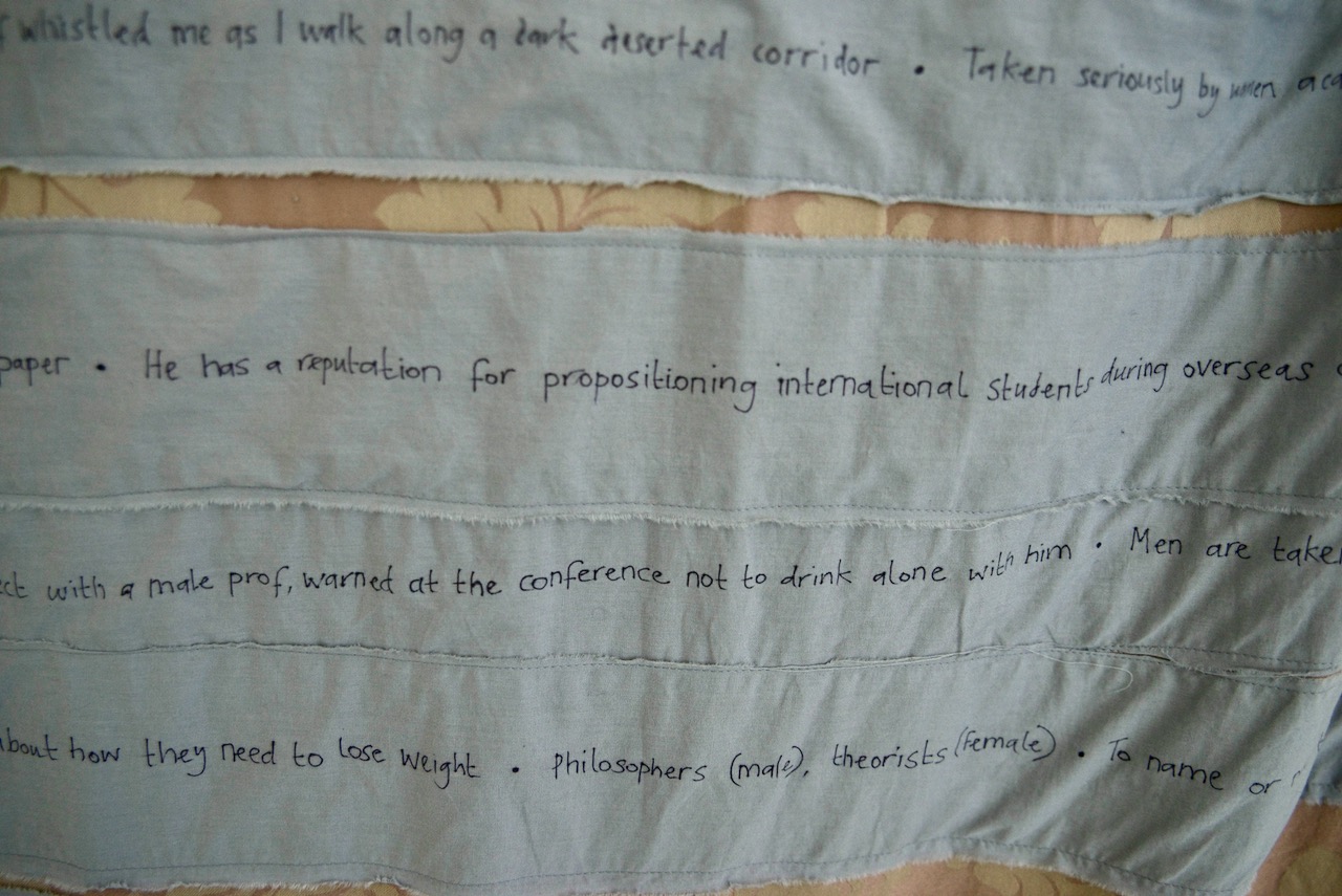 Since 2016, #FEAS Feminist Educators Against Sexism have created humorous interventions into sexism in the academic workplace. There There cites this work through its references to the #FEAS Unfunny Stand-up Comedy performances and the #FEAS Power Dressing photography project, and the ways these play with datasets of the real experiences of sexism faced by university staff and Doctoral students.